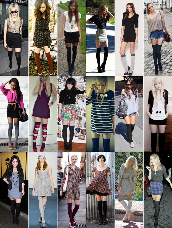 Para equilibrar o visual, o ideal é combinar as meias 7/8 com mini-vestidos e shorts curtinhos, deixando um espaço de mais ou menos um dedo entre o elástico da meia e a barra da saia ou shorts.