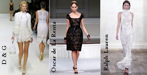 Criadores de moda como Ralph Lauren, Monique Lhuillier e Zac Posen, Dolce & Gabbana e Oscar de La Renta, apresentaram modelos de vestidos em renda, lindissimos que inspiram qualquer um e conduzem a um mundo romântico, elegante e chique, umas vezes num estilo celestial e inocente, outras num estilo vintage ou ainda num estilo cosmopolitano. Simplesmente divinais, ora veja as imagens.