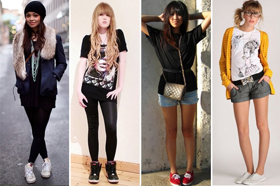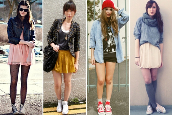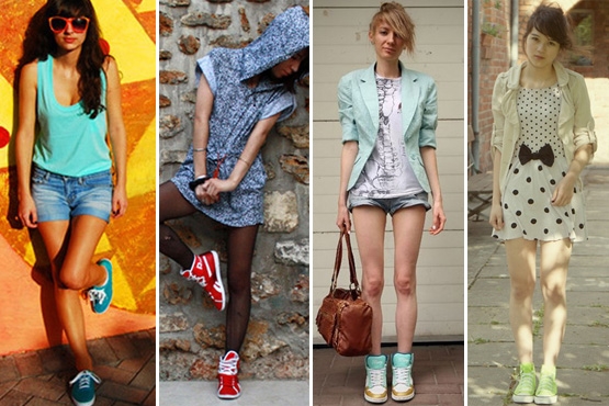 Engana-se quem acha que montar produções com tênis e com peças mais femininas que deixam as pernas à mostra, dá uma aparência de desleixo à mulher. Dá pra usar tênis com saias e vestidos sim. Além de muito bonito e super atual, o tênis dá uma equilibrada no visual sem perder o estilo.